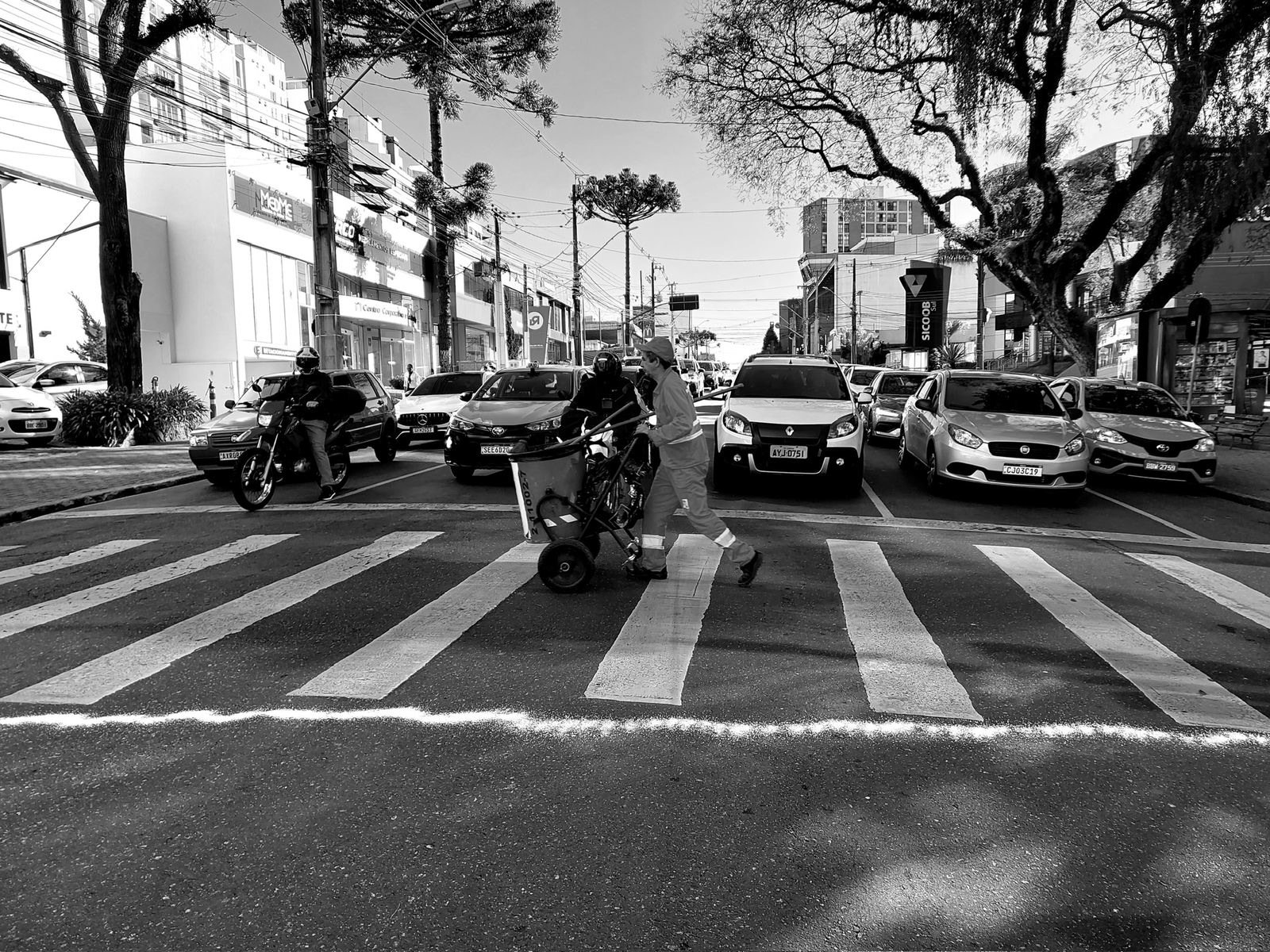 Ação que consiste em abrir uma faixa nos cruzamentos enquanto o sinal de trânsito está fechado. Ao mesmo tempo, pessoas distribuem panfletos com a inscrição: "10 maneiras incríveis de perder tempo".