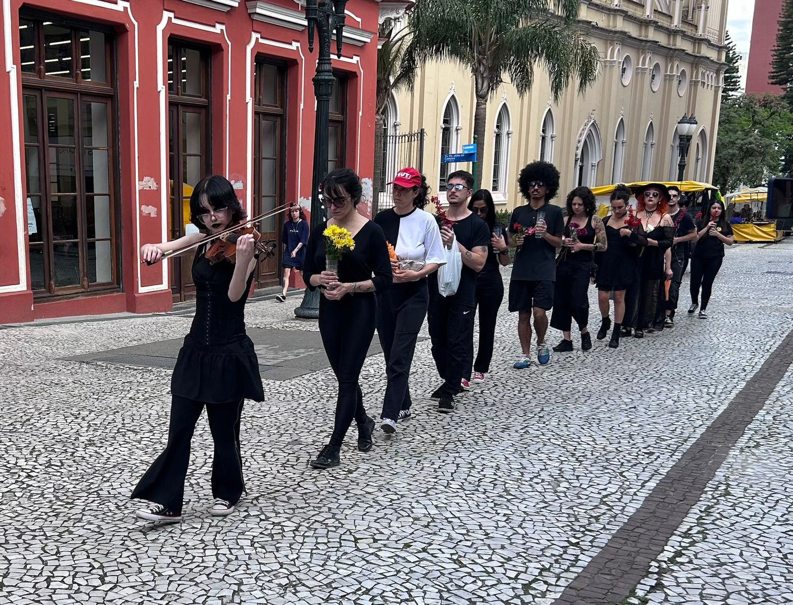 Trajado com vestes fúnebres, o coletivo LAPERFO realizou uma processão da EMBAP até o Copo Sujo, bar histórico da Travessa Nestor de Castro, recentemente fechado pela Prefeitura de Curitiba para a construção da chamada Rua da Memória. instaurando um funeral simbólico em homenagem a esse espaço que foi abrigo, porto e ponto de encontro dos habitantes da noite. Ao velar seu fechamento, a ação tensiona as políticas de apagamento urbano e pergunta quais memórias a cidade escolhe preservar.